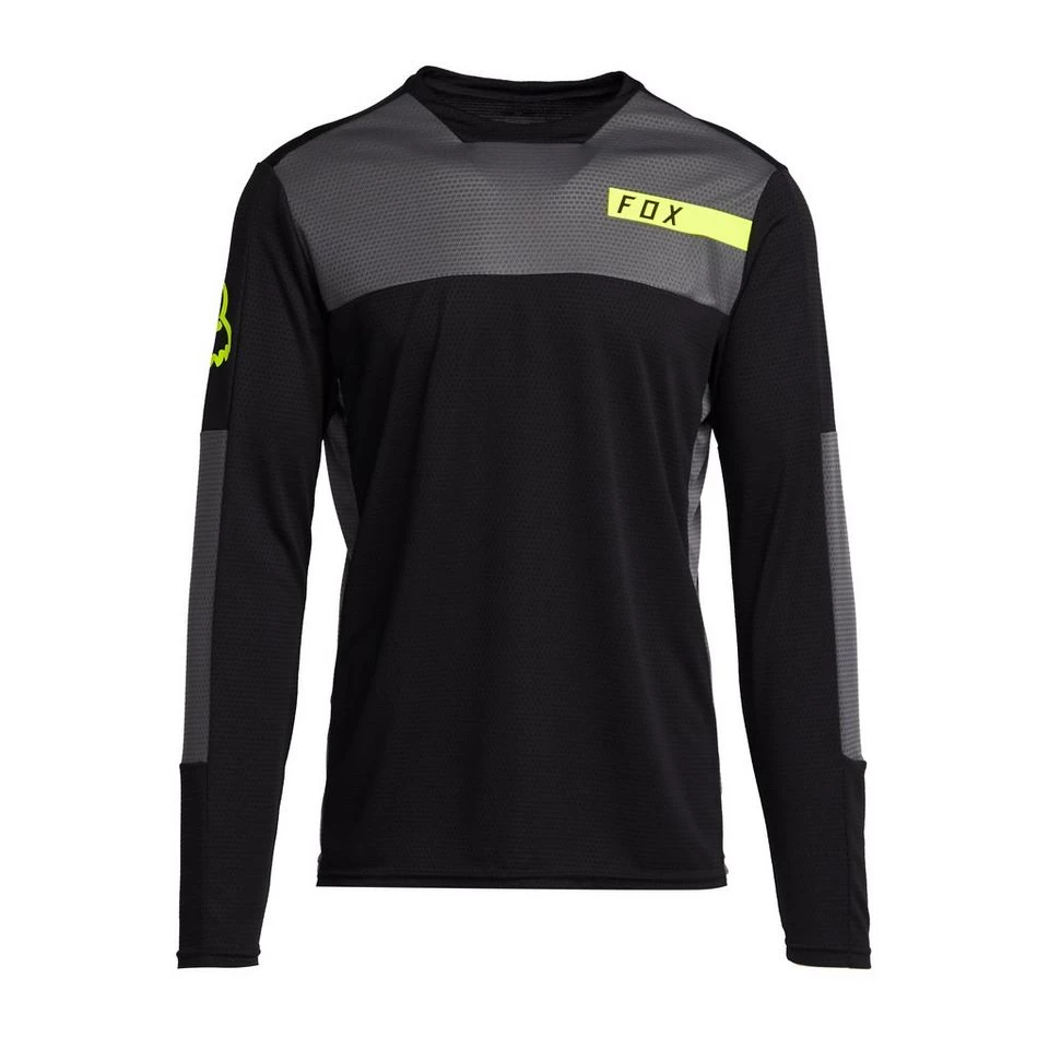 With long sleeves for extra coverage on cool days or muddy trails, the fully-recycled Defend Moth Cycling Jersey from Fox is an essential piece of MTB clothing and comes with a bike-specific cut.