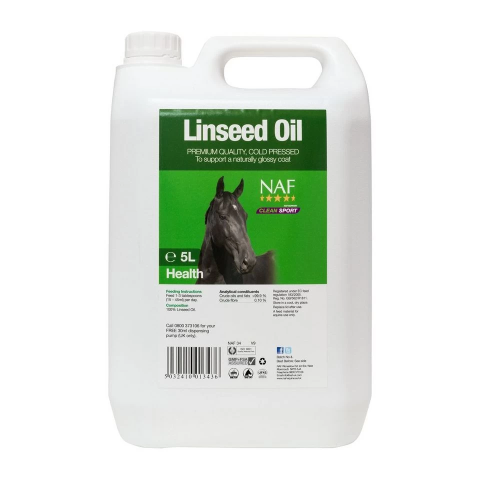 NAF Linseed Oil is rich in Omega 3 acids and supports general health and helps to maintain a rich, naturally shiny coat.