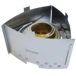 The triangle is constructed from 3 pieces of stainless steel that when assembled, form a triangle inside which the burner rests. Saucepans, frying pans and mess tins can then be rested atop the triangle over the burner to boil water or cook food.